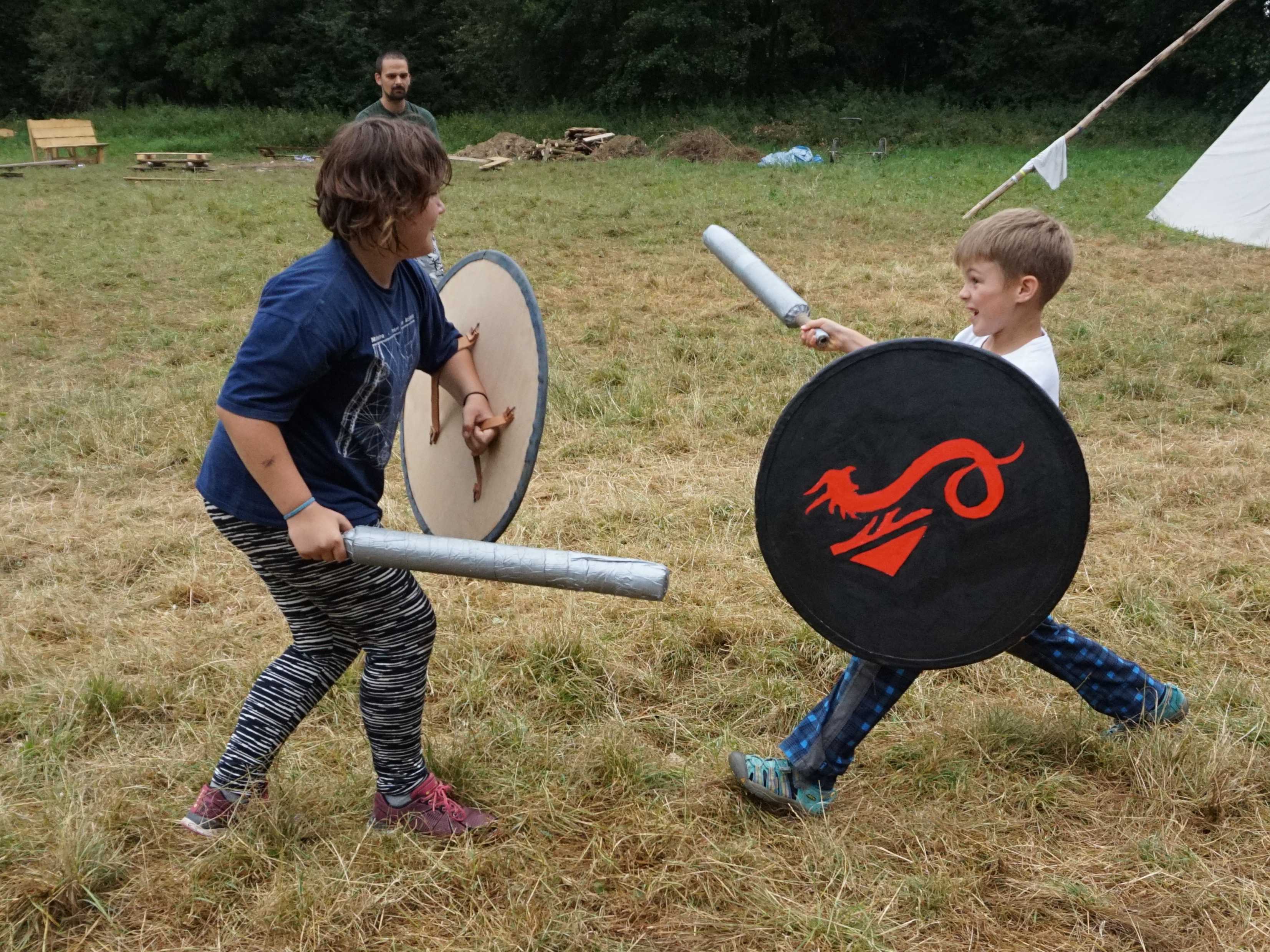 TÁBOR 2018![]() VikingovéKralice nad Oslavou14. 7. – 28. 7. 2018 fotky z tábora Božstva severu jsou ve sváru a hrozící zánik světa a soumrak bohů Ragnarök může odvrátit jen zásah odvážných smrtelníků. Těmi smrtelníky byli účastníci našeho tábora. Dobrovolníků bylo mnoho, a proto mohlo být vytvořeno šest družin vikingů. Družiny si vyrobily lodě – drakkary a pojmenovaly je takto: